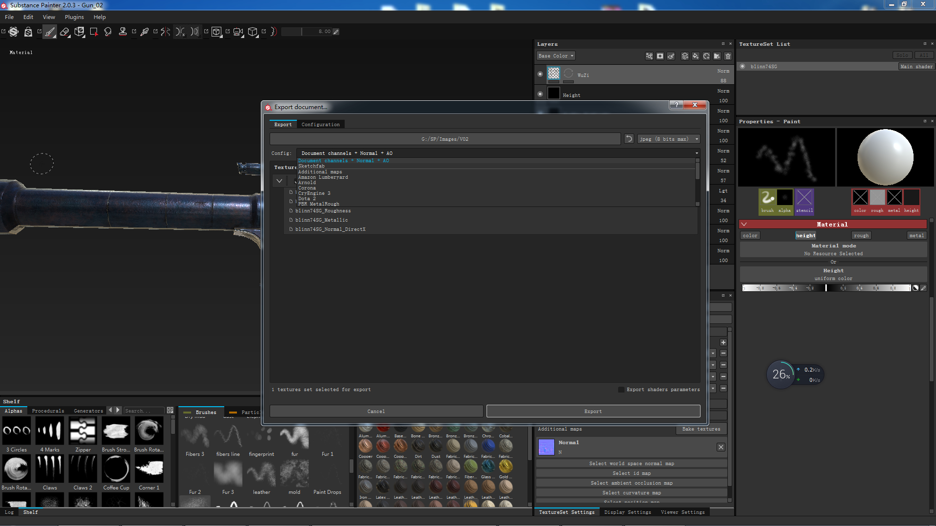 求大神们赐教怎样自定义输出贴图选项? 我仅仅想输出颜色 光泽度 发现以及高光贴图 不想输出什么Height metallic贴图啥的? 现在完全不知道怎么弄