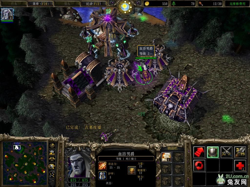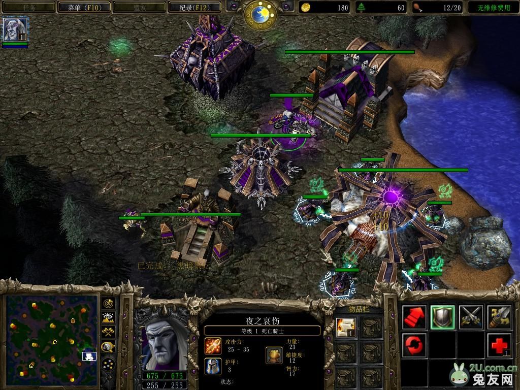 民兵还没走到对方家就变回了农民。基地附近的点虽然容易练,但是极其坑人(族)。基地左右2个小点隔太远了,只能练一个,第二个要被抓。至于分矿,练完刚好196经验到不了2级,我想说作者你是故意的么?2步兵5民兵勉强够练,但是你特么给多4点经验会死么?分矿易守难攻,不怕对面造塔,后面一圈树林简直是天然的屏障,非常适合开矿。但是有个问题,就是开完矿之后,人族的节奏就会偏向于被动,具体原因大家懂得~