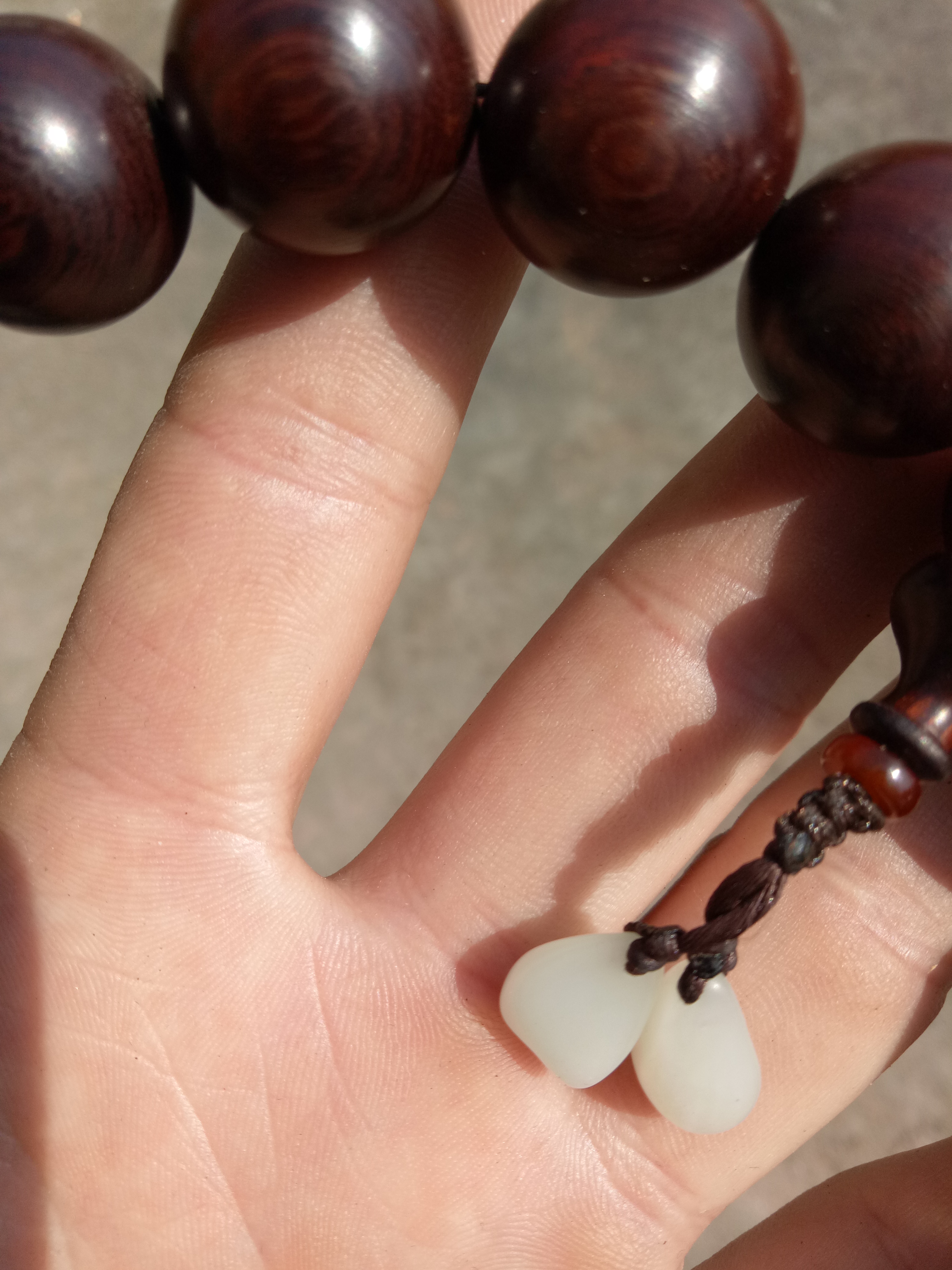 不知不觉居然有了四条串了,手持18子四年了,比起紫檀,感觉沙贴就是重