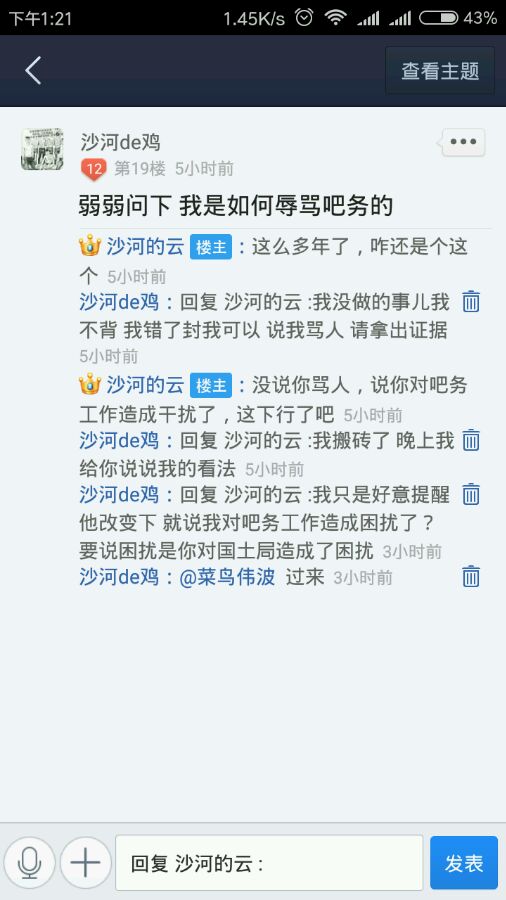 我就呵呵了 我哪里辱骂吧务了 我一个老吧友会直接用大号骂吧务让你们抓我把柄?