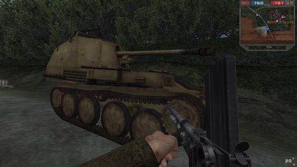“出发!”魏特曼一声号令,“虎”式坦克轰隆隆地驶出了林间小路。前面就是波卡基村,英军近3个连的兵力已经进入村子,平时,没有人注意过这个离卡昂30千米的小小农庄,可从这天起,平凡的波卡基村声名大噪,成为装甲作战经典战例的代名词。 魏特曼可不了解这些情况,他通过村边的麦田直插入175号公路,正好楔入英军团部的车队中。进入公路后,他的视野一下子开阔了,可也被吓了一跳。原来离他最近的英军侦察车就在其右侧15米的地方(刚才由于灌木丛的遮掩,谁都没有发现对方),而左侧200米,几辆坦克的炮口正对着他的坦克。英军同样大吃一惊,他们也没想到这附近竟有德军装甲部队。而且是令人恐惧的“虎”式坦克。FH2还原的相当真实。用🐯屠幼太爽