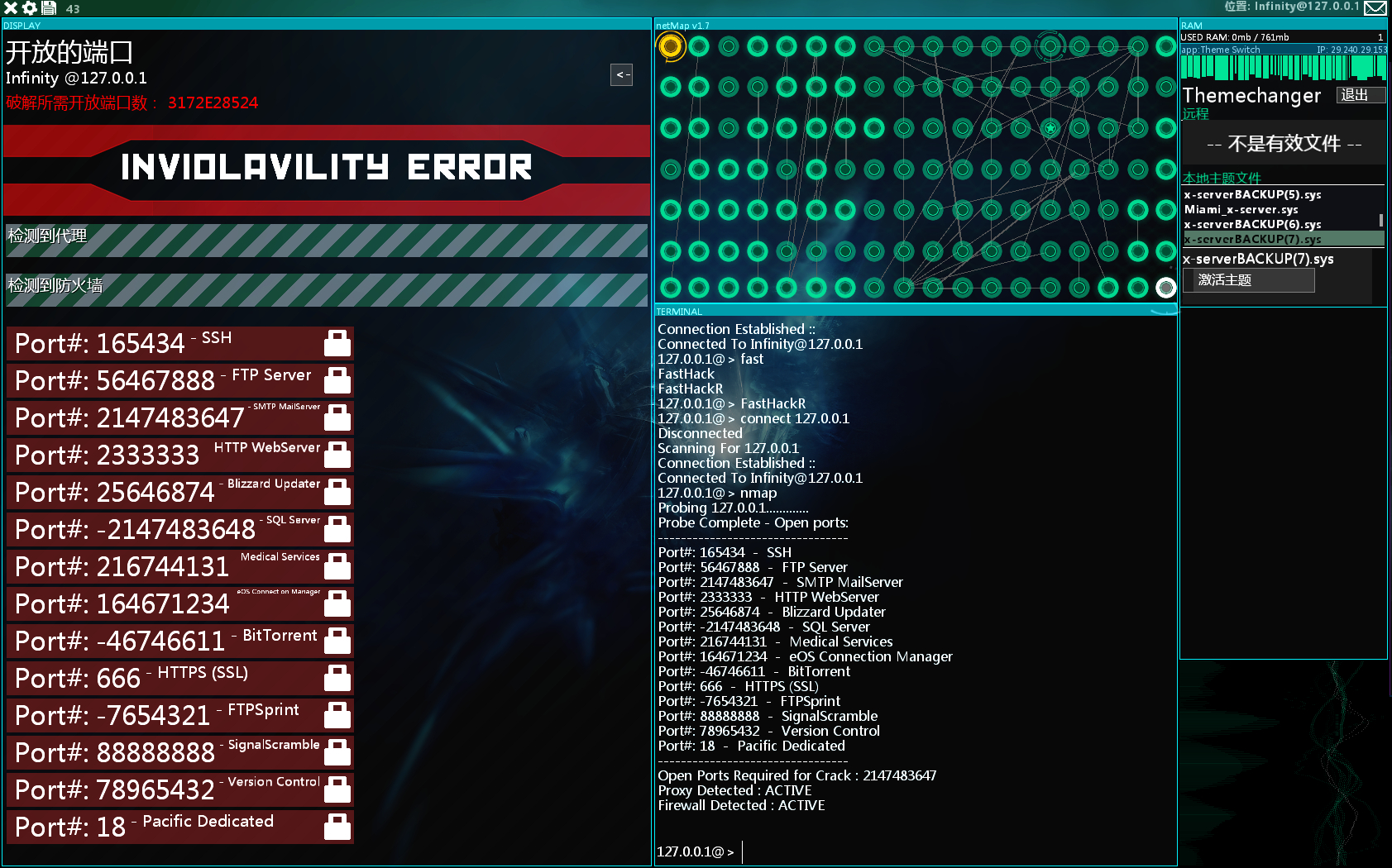 <portRemap>22=165434,21=56467888,25=2147483647,80=2333333,3724=25646874,1433=-2147483648,104=216744131,3659=164671234,6881=-46746611,443=666,31=1234567,211=-7654321,32=88888888,9418=78965432,192=18</portRemap>