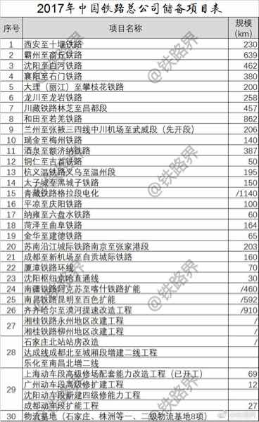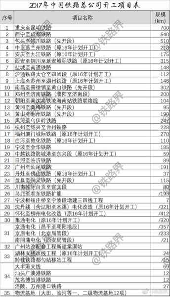 2017年铁路总公司拟新开工项目35项、投资规模8100亿元,储备项目30项、投资规模约6000亿元。虽然拟开工项目数量比2016年的45项有所减少,但拟新开工项目投资规模略高于2016年。