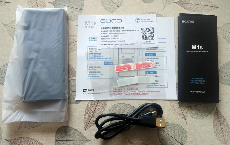 M1S的包装盒并不大,表面有一层类似于橡胶一样的涂层,手感不错。正面只有大大的AUNE logo,侧面印有关于播放器的一些规格,整体来说质感不错,很简洁,符合我的审美。