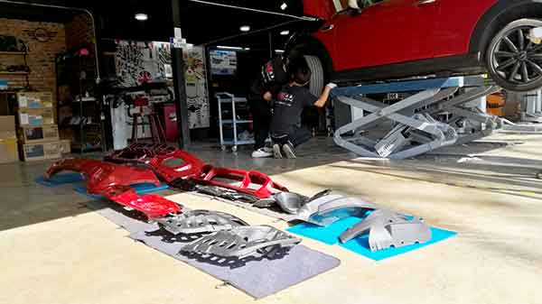 其实我们以前看到的包围,别看是一整块,其实是分开的,每个零部件都是一个独立的个体,在改装JCW前后包围的时候,我们需要先将包围组装之后,才可以上身!