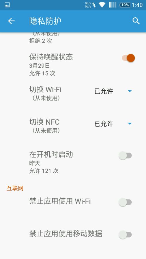 系统设置--内存--开机时候启动的应用--选某个app下面有禁用网络设置.wifi和流量