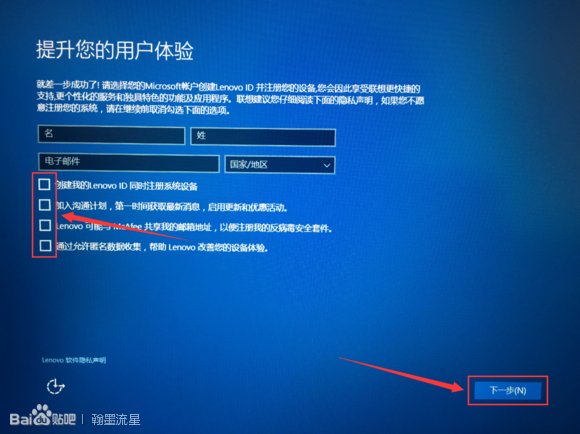 第8步:创建一个账户,在点击【下一步】,如下图:(说明:账户不一定要创建为Lenovo,自己想创建什么就创建什么,ABC 123都可以,但这里不建议设置密码,要设置密码等以后在设)
