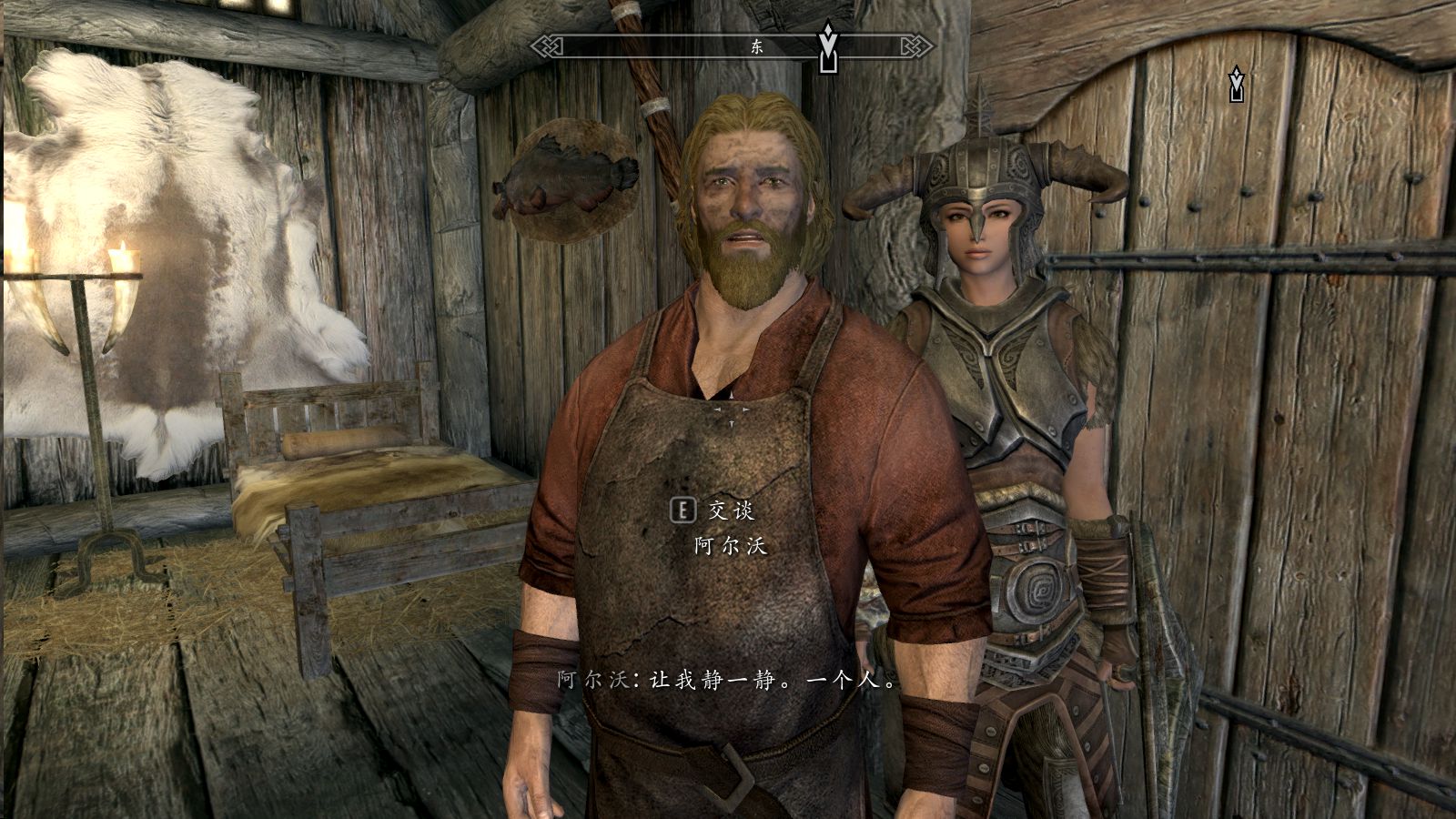 开了个新档,去溪木卖东西时正好碰到两个大师吸血鬼入侵,铁匠阿尔沃的妻子被打死了,然后铁匠就跑回自己家等了两天没出来,进他家和他对话,他的表情很悲伤,还说 让我一个人静一静,细节真吊