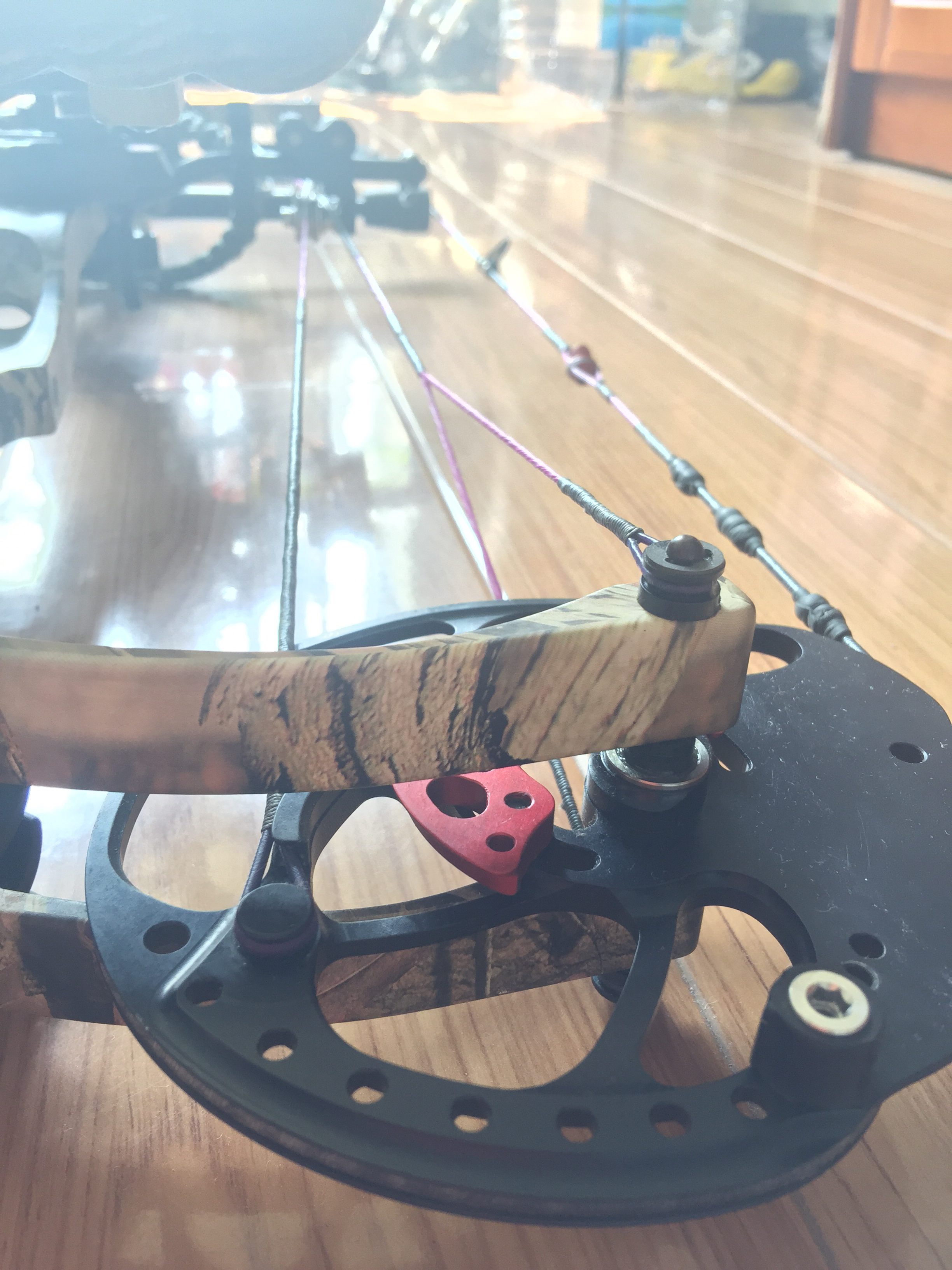 4、比较郁闷的 原厂弓片减震 和止弦 ,满磅情况下,大概1组箭,原厂弓片减震就位移到要脱出,要手动复位。止弦头也被抽得偏转。 通过把弓片减震位置调节更靠弓身, 止弦头调整后,问题才解决。