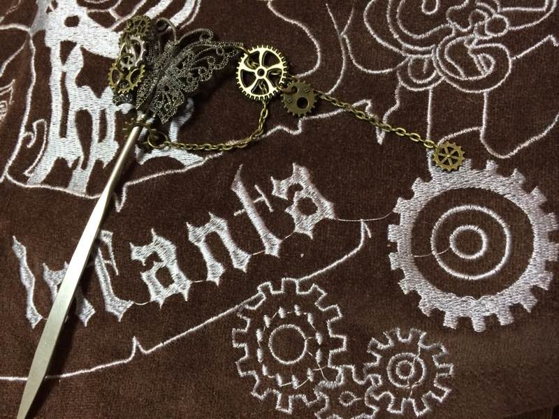 因为各种元素我都喜欢~其中就包括朋克蒸汽风~所以后来改造了一个发钗~原本是买的蝴蝶发钗,后来时间长了它发旧生锈了…但还是很好钗头发,而且它发旧的颜色刚好和齿轮很搭~所以我就做了这个~~~和小裙子也特别搭~~~