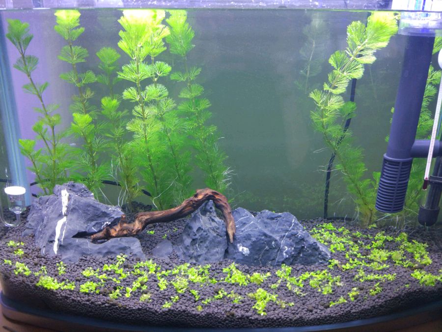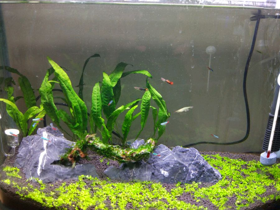 别人送给丈母娘一个一体缸,养了一段时间血鹦鹉,觉得缸太小了,买了个80的缸把鹦鹉放进去了。换下来的缸决定试试草缸。