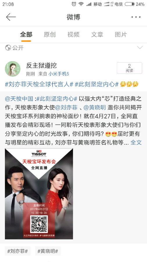 话题 并将转发微博截图至本帖 即有机会获得天梭精美礼品和茜茜签名照~活动4.27截止 希望大家踊跃参加哦~