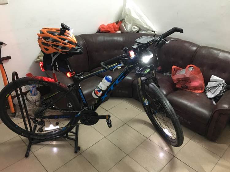手电,头盔灯,前后轮风火轮灯(可编程风火轮,装逼用),前叉两边示宽灯(青蛙灯)。