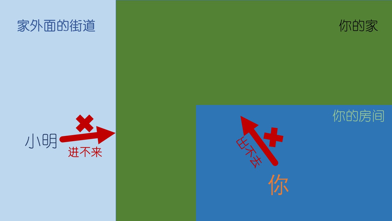 要想让街道边(外网)的“小明”进来,我们就要先从“房间”(本地网)到达“客厅”(局域网)