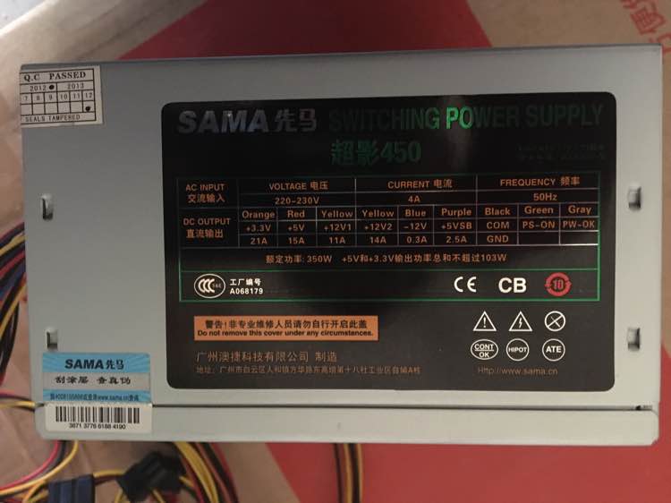 先马超影450 电源40块 额定 350W 支持750 1050以下功率显卡 可以帮你换上
