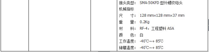 s标签数据读取速率8. 配置以及参数设定灵活,提供最大化9. 标签阅读量和最佳工作性能电气性能:适用于UHF频段RFID终端场合的通用型天线,具有定向性,窄波束,高增益等特点。机械性能:适合各门禁、人员、资产管理等场合使用。主要用途及适用范围可方便地应用于UHF频段门禁、人员管理、资产管理等场合使用。性能指标频率范围: 860MHz~960MHz电压驻波比:≤1.3:1增 益: 10 dBic极 化: 圆极化轴 比: <3 dB相对湿度: 5%~95%输入阻抗: 50 Ω接头类型: SMA-50KFD型外螺纹母头机械指标尺 寸: 460 mm×220 mm×35 mm重 量: 2.5kg材 料: 亚克力板、铝。颜 色: 黑色工作温度: -40℃~+ 85℃储藏温度: -40℃~+ 85℃产品的功能及特点电气性能:适用于UHF频段RFID近场天线机械性能:体积小、无盲区,距离可控等特点。频率范围: 920MHz~928MHz电压驻波比:≤1.5:1增 益: >3 dBi相对湿度: 5%~95%输入阻抗: 50 Ω接头类型: SMA-50KFD型外螺纹母头机械指标尺 寸: 128 mm×128 mm×37 mm重 量: 0.2Kg材 料: RF-4,工程塑料ASA颜 色: 白工作温度: -40℃~+ 85℃储藏温度: -40℃~+ 85℃ 5.1.2桌面式读写器