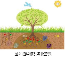(2)植物的根部也由土壤中的有机质直接吸收溶解于水的小分子有机碳元素,输入植物内部经电化学反应形成植物的内部组织和能量来源。