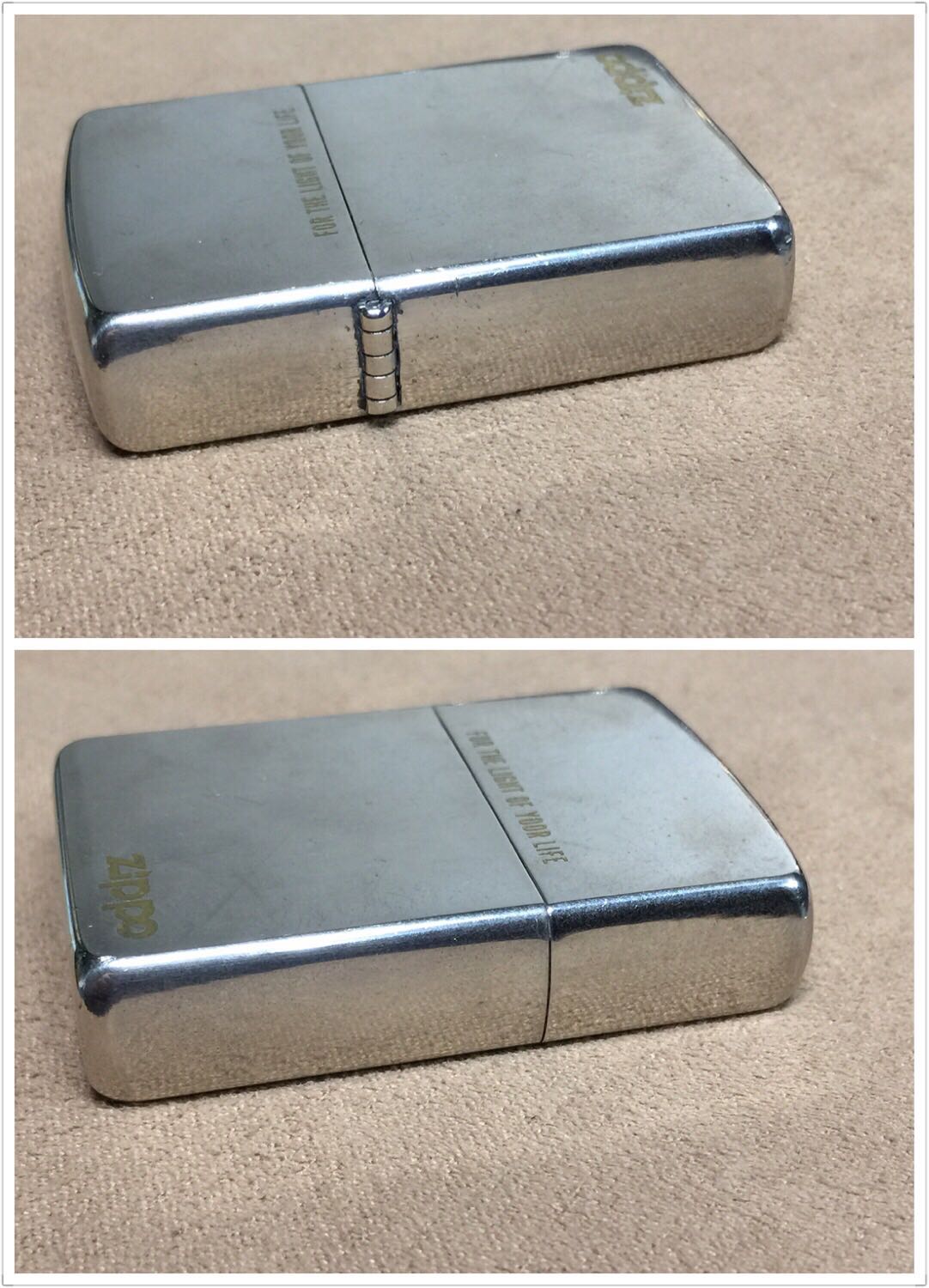【具体描述】二手1986年大斜底 蚀刻填漆工艺 点亮人生,反底刻。机身正常使用擦丝划痕,边角针眼和磕碰略多,定义差品。铰链正常,原配1986年内胆已更换全新进口火轮,打火强劲 无包装。