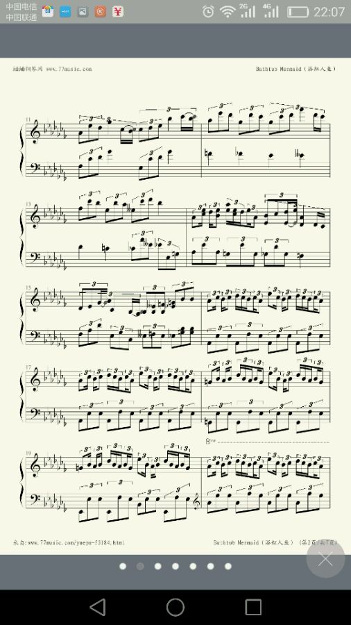 谱子在弹琴吧找到的,想看更清楚一些请下载弹琴吧查看,只要搜索浴缸人鱼就可以找到
