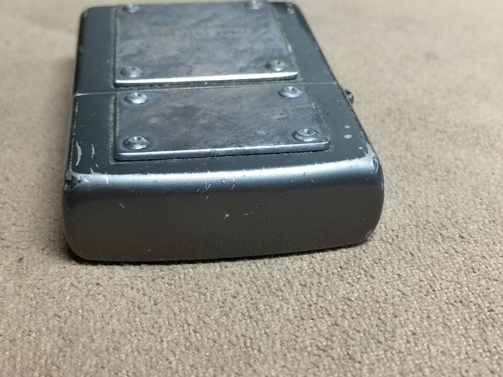 【具体描述】二手2002年9月 潮牌 COMME CA DU MODE 定制机 烤漆底板蚀刻+双贴章工艺,贴章嵌铆钉,风格独特。机身正常使用擦丝划痕 漆面局部磨损,几处磕碰微距拍出,定义差品。铰链正常,原配02L内胆打火一般(加10元可更换全新进口火轮)无包装。