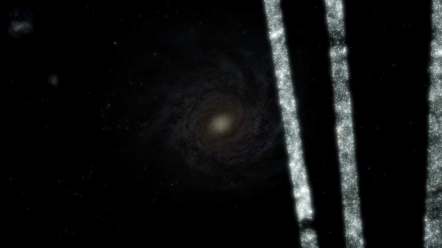 但是一旦拉出银河系,那么周围这几个巨大的亮的瞎狗眼的大煎饼就出现了,感觉跟周围的宇宙环境截然不同