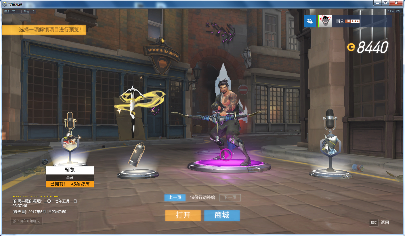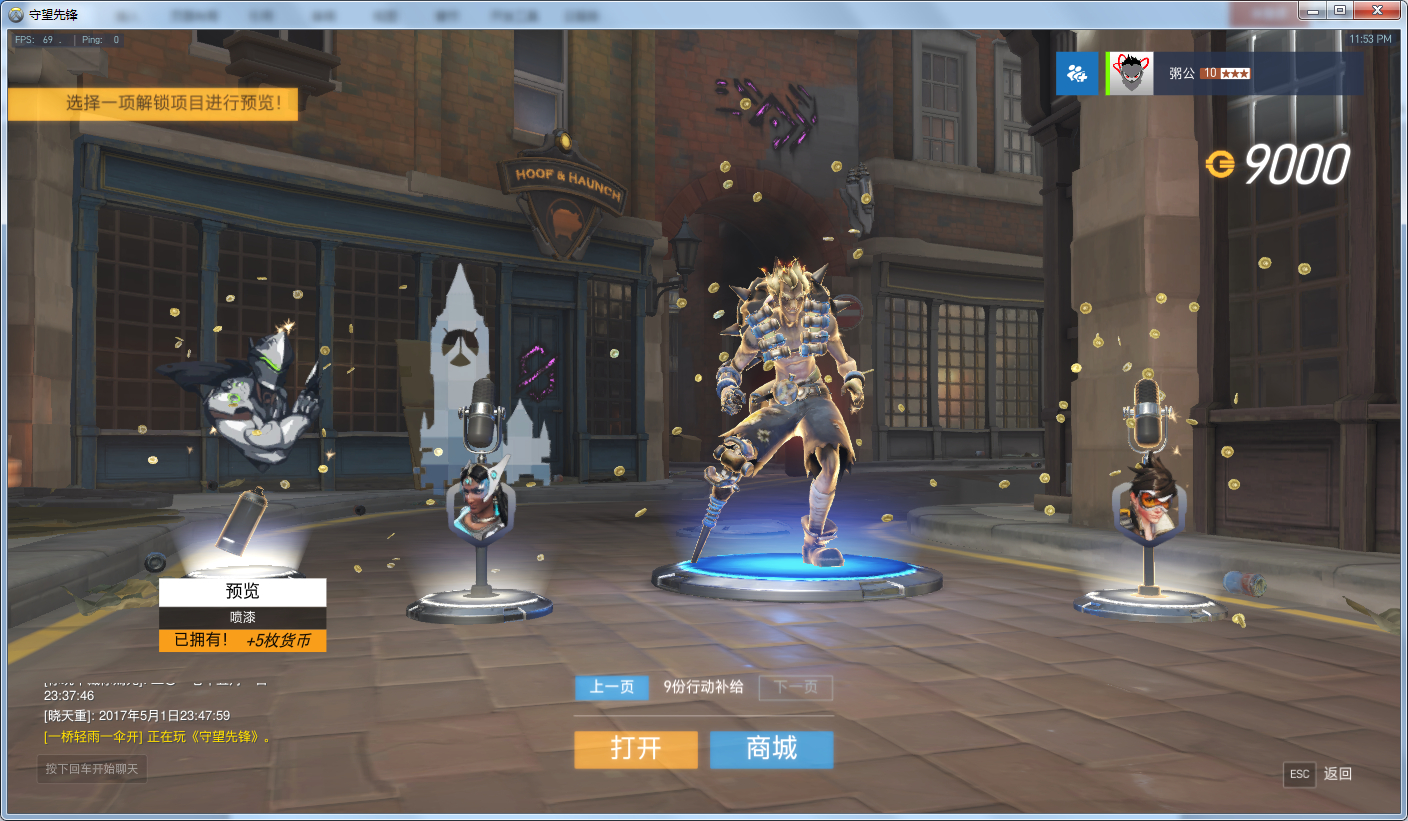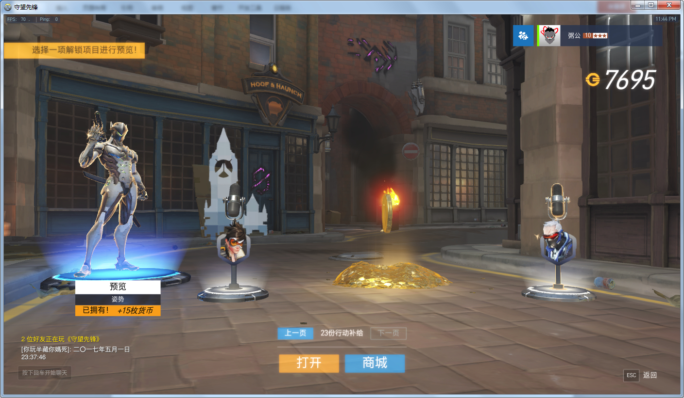 国王行动没充钱,就自然开箱子出了源氏、天使、澳利莎,其他一概没出...