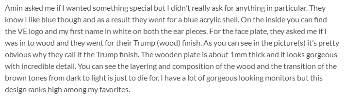 The Vision Ears VE8’s treble will blow you away, could this be the very best treble in a CIEM ever? The VE8 uses 4 BA’s to produce treble but I wouldn’t really say this is a treble focused monitor as the VE8 doesn’t push them upfront. The treble is perfectly in line with the bass and mids but it is incredibly detailed, clean, clear and precise. Treble is fast and price with great layering. It’s a please hearing such qualitative, energetic treble without it sounding harsh or sharp.