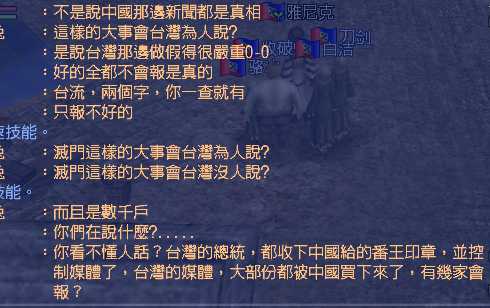 其实大多数台服玩家还是比较理智的,被洗成这样的毕竟是少数。我的本意也不是想挑起仇恨。看过这些以后,对于类似“台du”,“太yang花运动"的形成,就能大概理解了吧。毕竟,两岸交流还是不够多,资讯相对封闭,还是其中一位玩家说得好(香港人),多走走看看,相信自己的眼睛,而不是媒体。