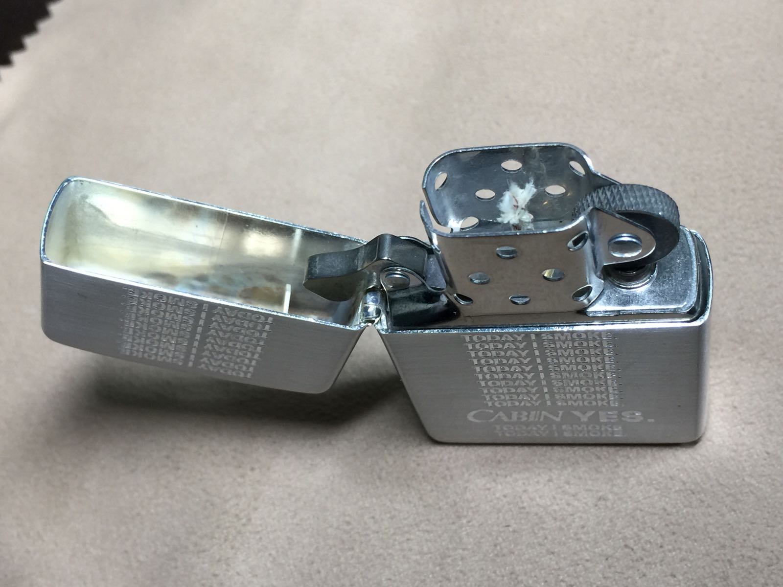 【具体描述】近新1995年10月 卡宾烟草抽奖机 限量5000枚 机身无编号,镀银底板蚀刻工艺。机身运输不当,局部擦丝擦痕、均强光拍出。因镀银层较厚,底刻年份刻印XI略淡,介意勿拍。原配95L内胆未点火,轻微开合盖痕迹,总体定义近新品相。近代黑纸盒包装。