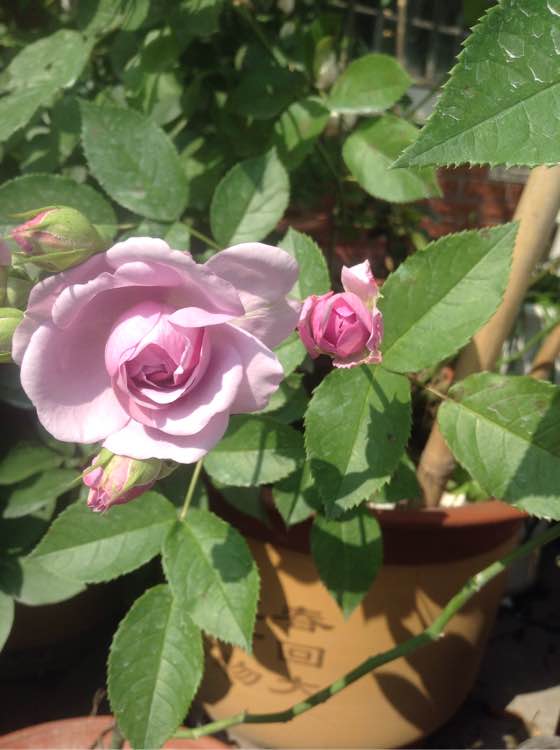 去年买了好多月季,老板随机送了我一株,长大了问是薰衣草花环。去年的只长个不开花,一直长到二、三米,后来夏天被我浇水太多,烂根挂了。