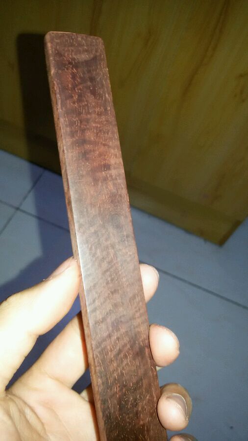 鬼使神差地入了一条薄片料,原因是以前很想尝试下戒尺这个题材 (感觉是既简单又上档次……),见过鸟友大神磨制的一条戒尺后脑子更是发热,于是认真等待缘分到位,寻一条眼睛一对上就挪不开的料