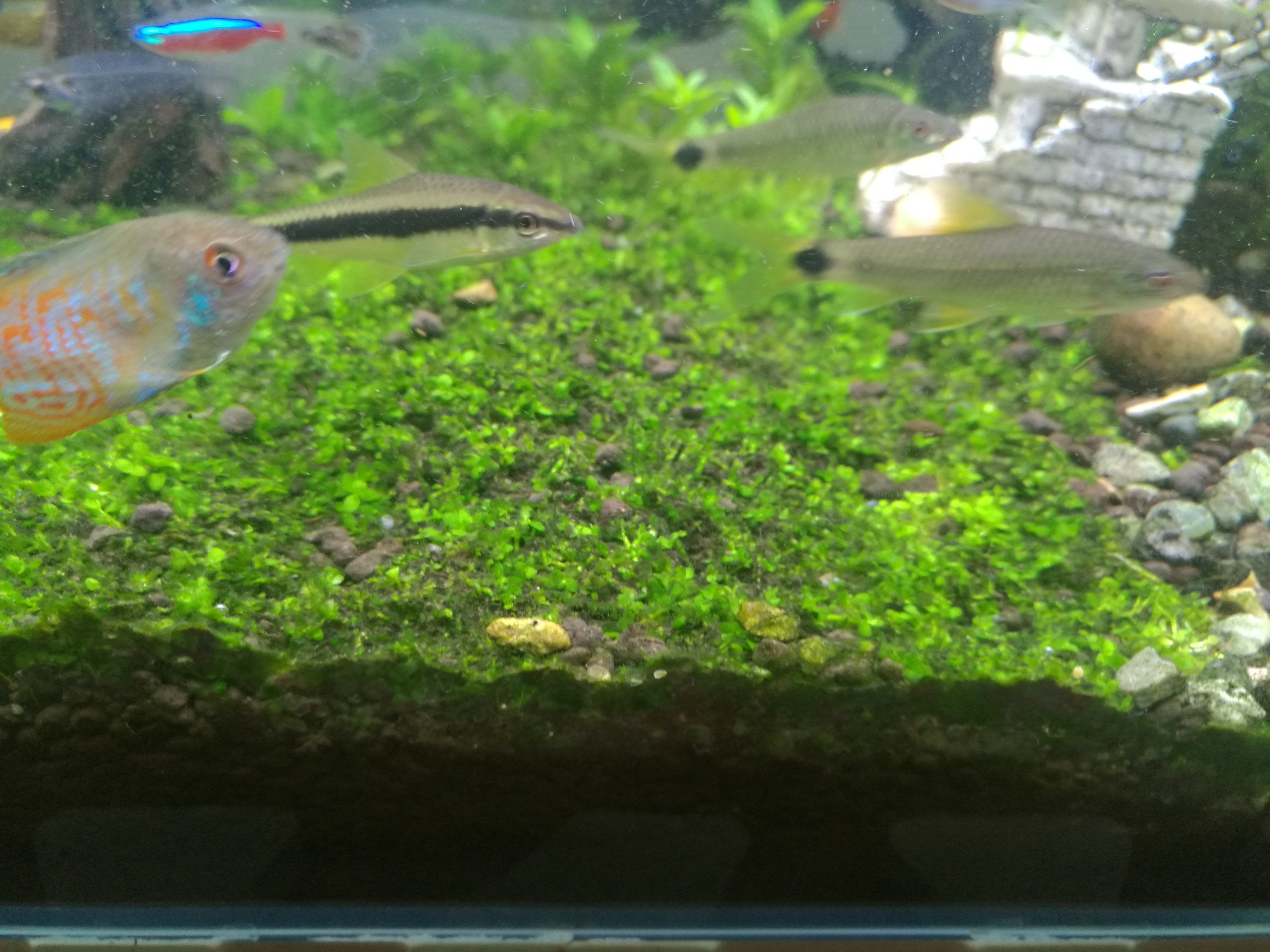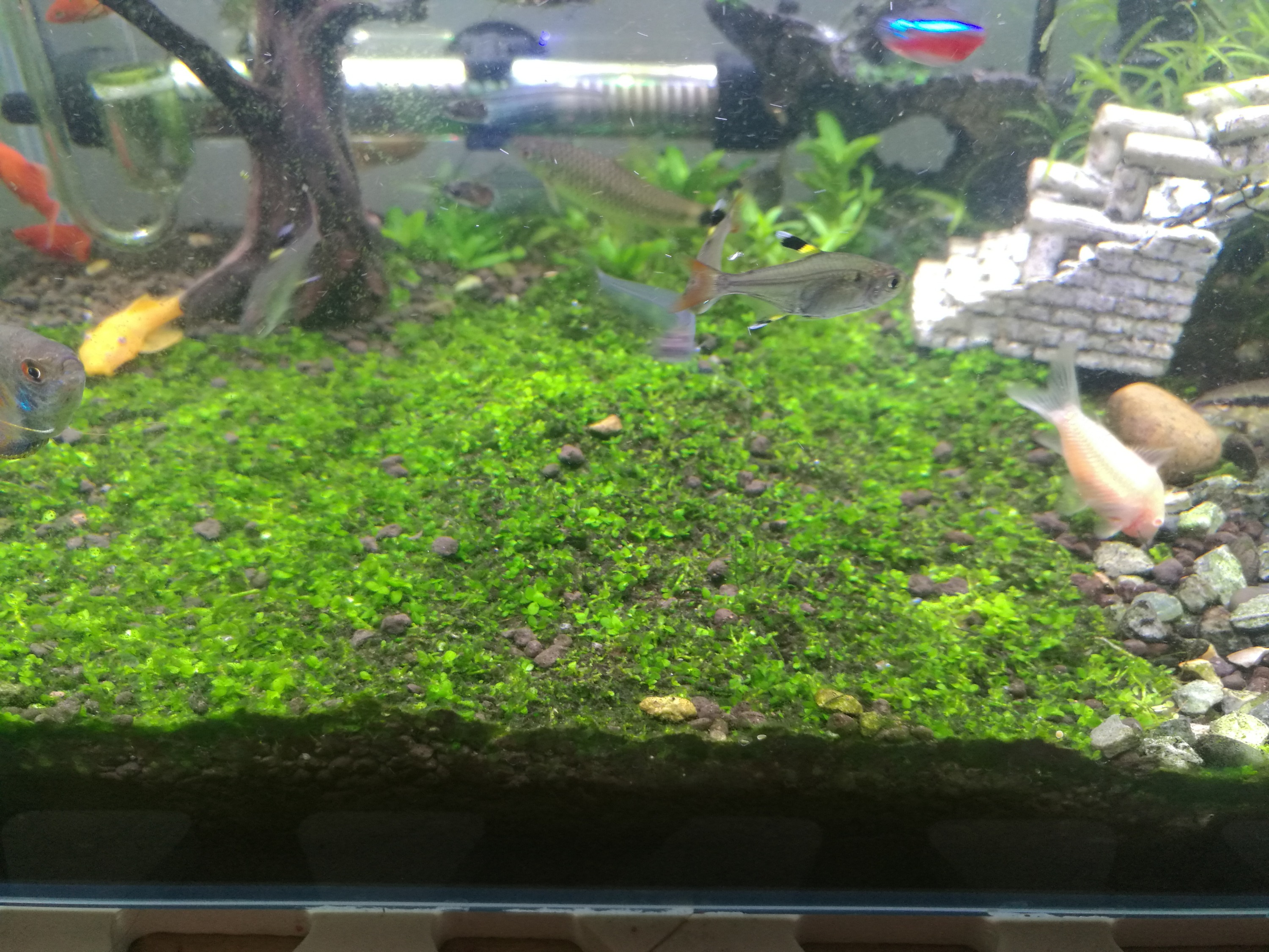 是有一些藻,减少光照,下戊二醛,加强换水。