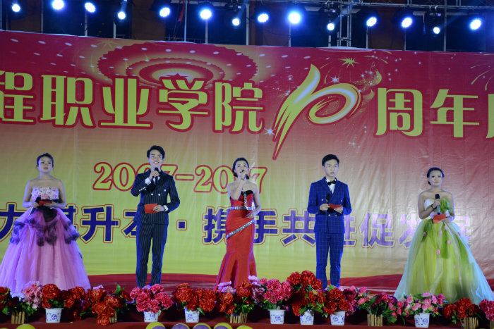 2017年工程学院庆祝建校十周年的庆典活动,4月20号当天白天学校邀请来了区、县的相关领导出席了庆典讲话,还有部分校友也表达了对学校的祝福,晚上学校隆重举办文艺汇演!