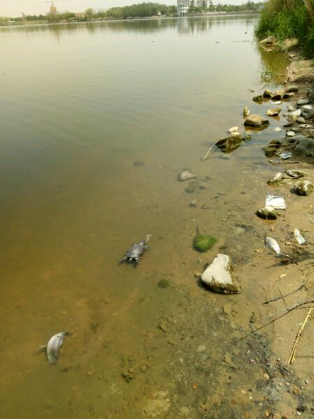 青云湖里这么多死鱼还有死鳖!花是奇好看