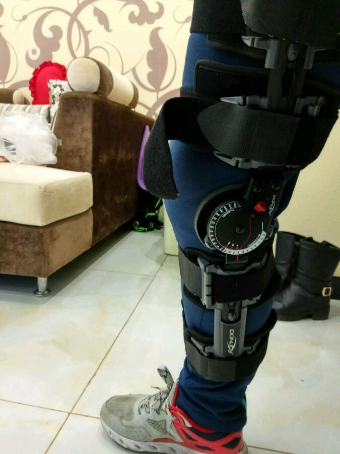 16年11月踢足球比赛受伤,伤后到医院检查,内侧副韧带2度撕裂,后叉断裂,保守几个月,内侧副韧带逐渐养好,过完年3月在江苏省人民医院做了后叉重建,取的腂绳肌腱,术后第三天用拐术腿下地找感觉,医院待了7天回家休养,回家后上下午各下地一两次找感觉,过15天~20天左右伤口线自动脱落,我从第二周开始坐床边被动弯腿练习,一天练两次,到37天时角度140左右,目前67天已基本和好腿一样,基本生活已不影响,我想给大家一些自己的建议供大家参考不要走弯路,术前一定要进行一些角度及力量的功能锻炼,这样为手术打下基础,不至于术后弯腿那么困难,术前膝关节要和好腿弯曲程度一样,大腿四头肌争取纬度和好腿一样并加强力量练习,术前把自己的事情处理好并把东西买好,如拐杖,支具,尿壶,生活用品,医院的支具很贵的,术后床上的15-20天时间的功能锻炼不能停,如屈伸踝关节,用劲收缩大腿肌肉,直抬腿有争议,北三不建议做怕拉伸到我们的后叉韧带,根据自己情况自己选择,我是做了几天后就没做,如果你有半月板缝了几针,那你不能像我一样术后伤腿就着地,你要过个4-5个月再着地,术后支具直腿固定一个月后我就拿掉支具慢慢自己走了,走的时候一直保持直腿状态,因为怕牵拉到大腿取肌腱的后侧肌肉群,术后一个半月开始慢慢的正常走路,开始靠墙双腿马步蹲,先小幅度后大幅度,到2个月时候开始单腿直腿站立并过渡到弯曲单脚静蹲,自己买了固定自行车开始练习膝关节的灵活性很有效果,记得练的时候带个护膝保护,自己买了弹力绳,刚开始用一根练习,绑在踝关节,大才腿外展,内收(我有内侧副韧带损伤暂时没练),后踢,前踢(后叉断裂术后要防止胫骨后移,所以这个动作大家不要练,等过4-5个月之后慢慢开始练),在这期间,上肢力量带着练,仰卧起坐,俯卧撑,平板支撑,侧支撑,双杠屈伸,引体向上,等等。目前我才术后67天,康复的路任重道远,只为了能够再次回到心爱的球场!未完待续。。。。