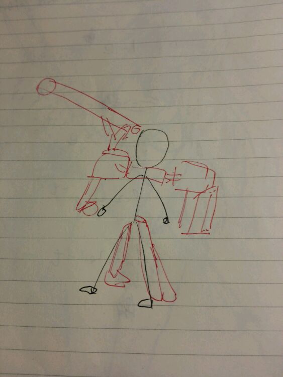 手残党瞎画了一下,感觉把主炮抬到肩膀以上,防御的装甲单独做成盾牌放到另一侧。然后弹药箱(?应该是)放到原先轰雷娘腰上后裙甲的地方,履带什么的装在小腿后方做支持。应该会好一点