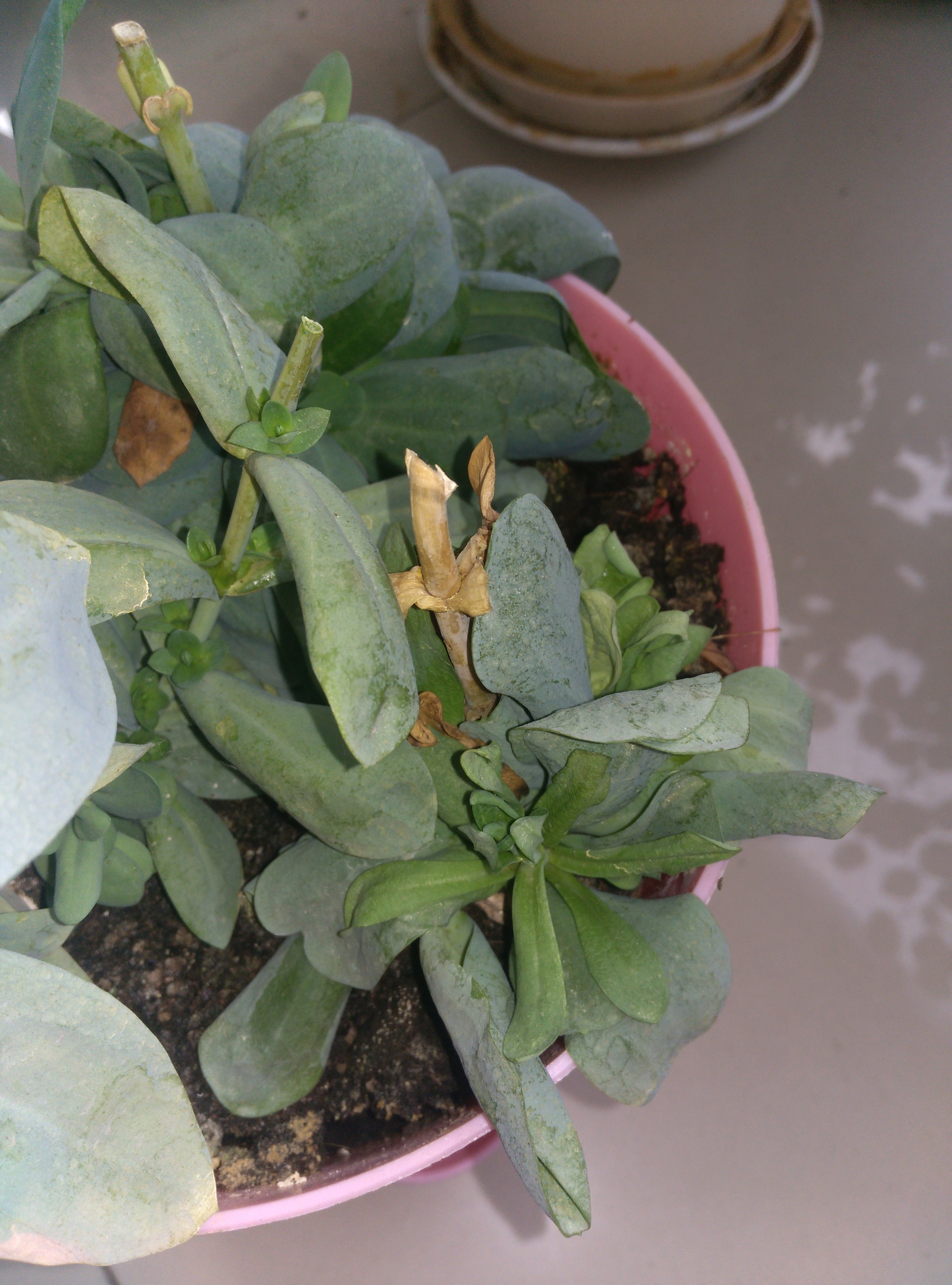 土有点湿,叶子蔫,应该是没等土干又浇水了吧?如果温度比较高通风又差的话,根系容易生细菌,建议控制浇水加强通风……