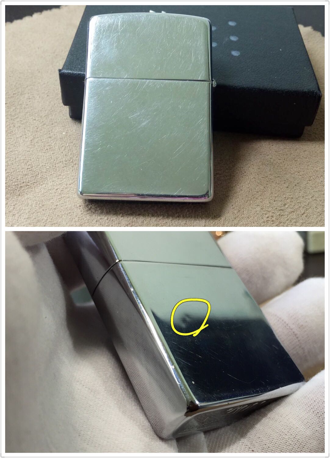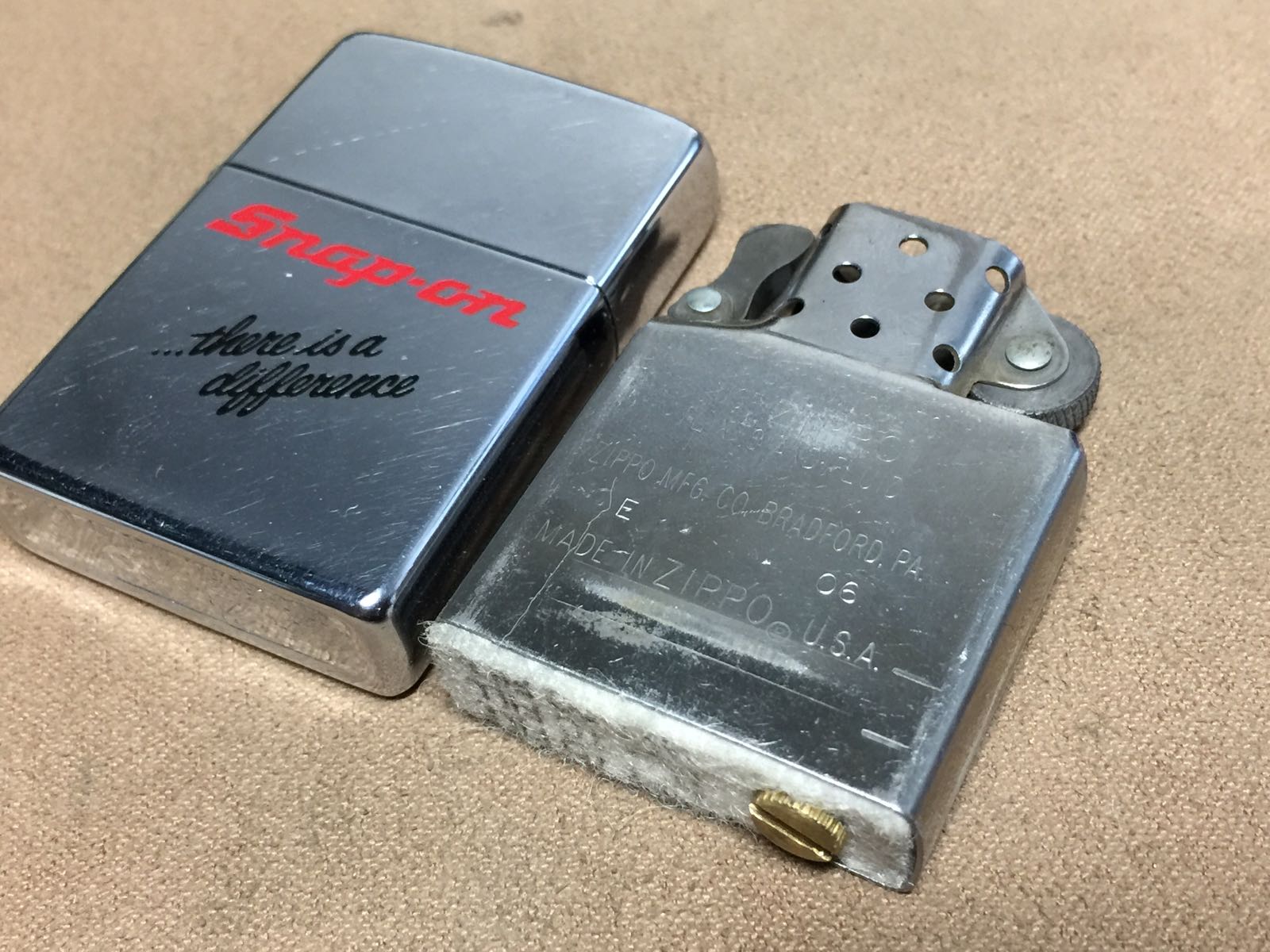 【具体描述】二手1994年12月 顶级工具 SNAP-ON 定制机 反底刻,拉丝蚀刻填漆工艺。机身正常使用擦丝划痕,背面有处不明显浅凹,顶部少许针眼和一处浅磕,底部一角浅磕 边缘局部有刮痕,均微距拍出,定义差品。铰链正常,后配06E内胆打火一般(加10元可更换全新进口火轮)无包装