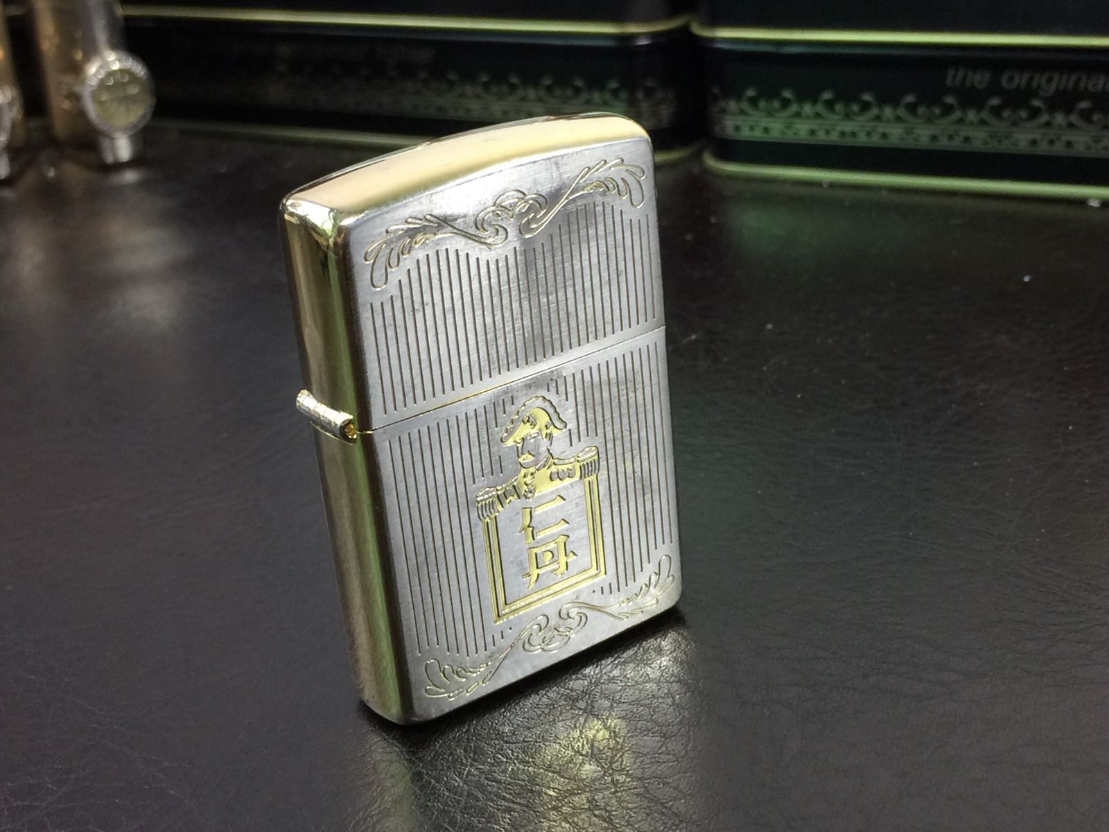 【具体描述】2004年9月 罕见仁丹定制机,镀金底板蚀刻+正反面镀银工艺,背面限量号蚀刻,本机编号0496。该机未使用,无磕碰,运输不当,表面镀层不同程度磨损(强光拍出)定义二手好品。原配05E内胆未点火,少许开合盖痕迹,近代黑纸盒包装。