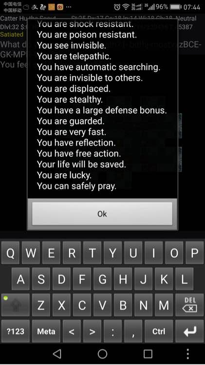 下楼时蒙上毛巾看到Yendor法师,听说3.6.0中法师会被惊动,吓得我魂飞魄散回去清了吸血鬼。由于萌新,做了很多蠢事,现在ascension kit还差好多物品,打算回主楼恢复一下再下去挑Yendor。求各位大虾祝福。