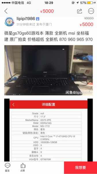 闲鱼上卖全新gs60的