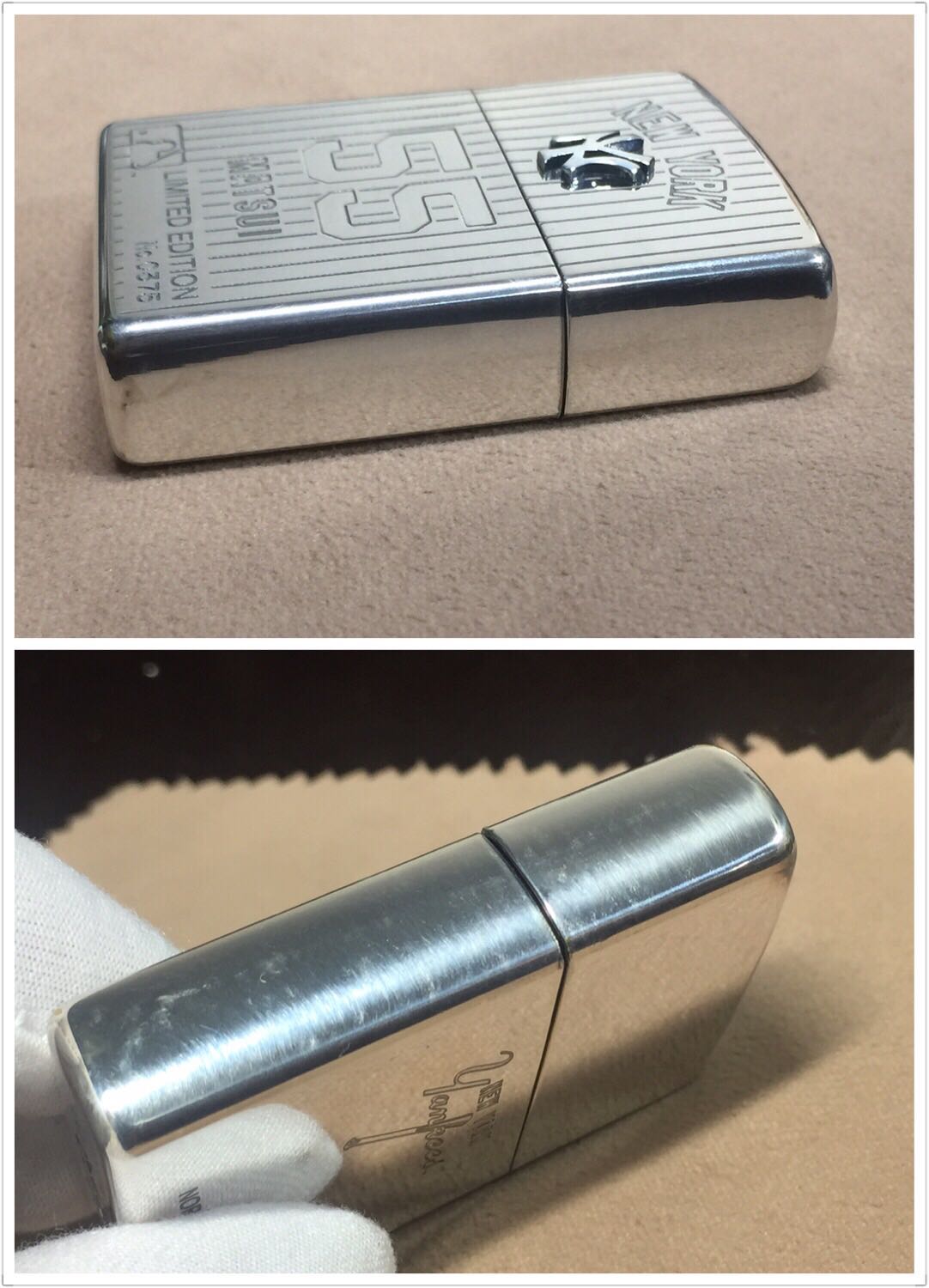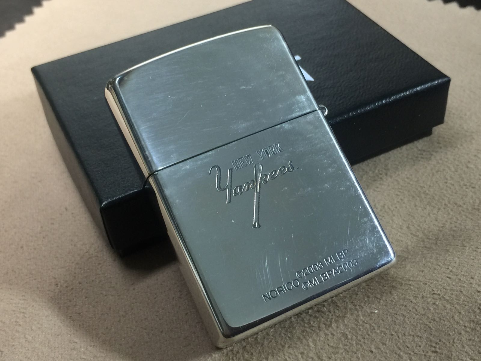 【具体描述】全新2002年3月 纽约扬基队 限量镀银机,本机编号0375。镀银底板双面蚀刻+正面小贴章工艺。机身保存不当 表面擦丝擦痕较多(强光拍出)边缘局部氧化,定义全新差品。原配全新同年同月内胆,后配同期纸盒。