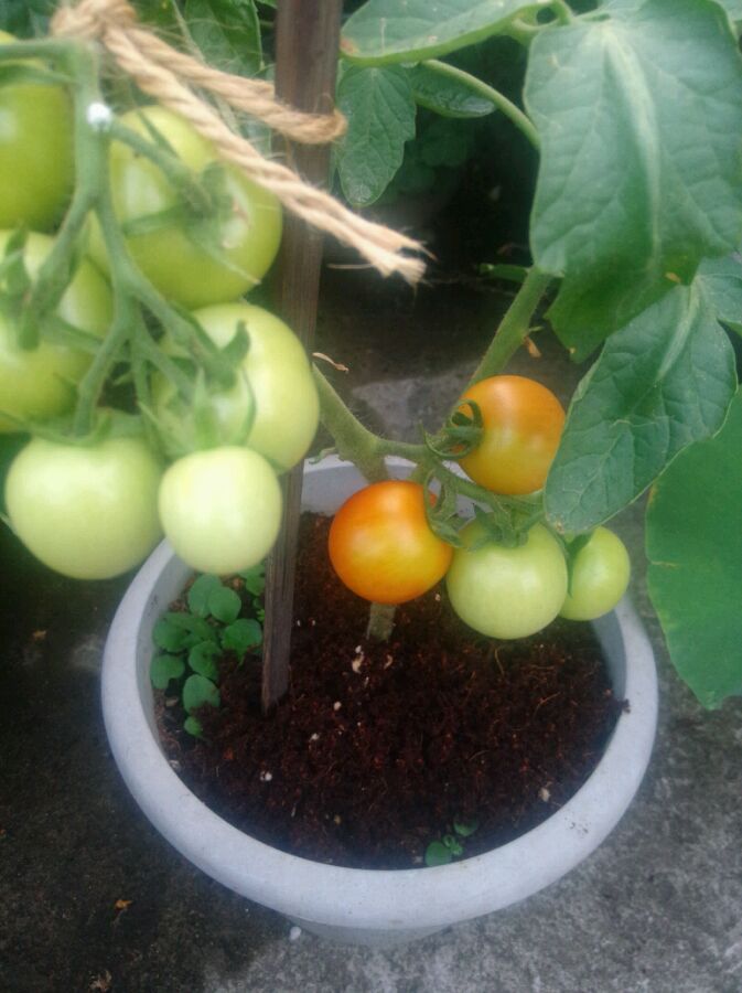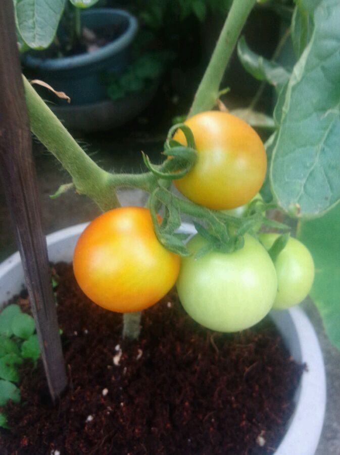昨天下了一天雨,忘记给番茄遮雨,结果早上一看,果裂了,心碎💔💔💔,还好青色的番茄没裂
