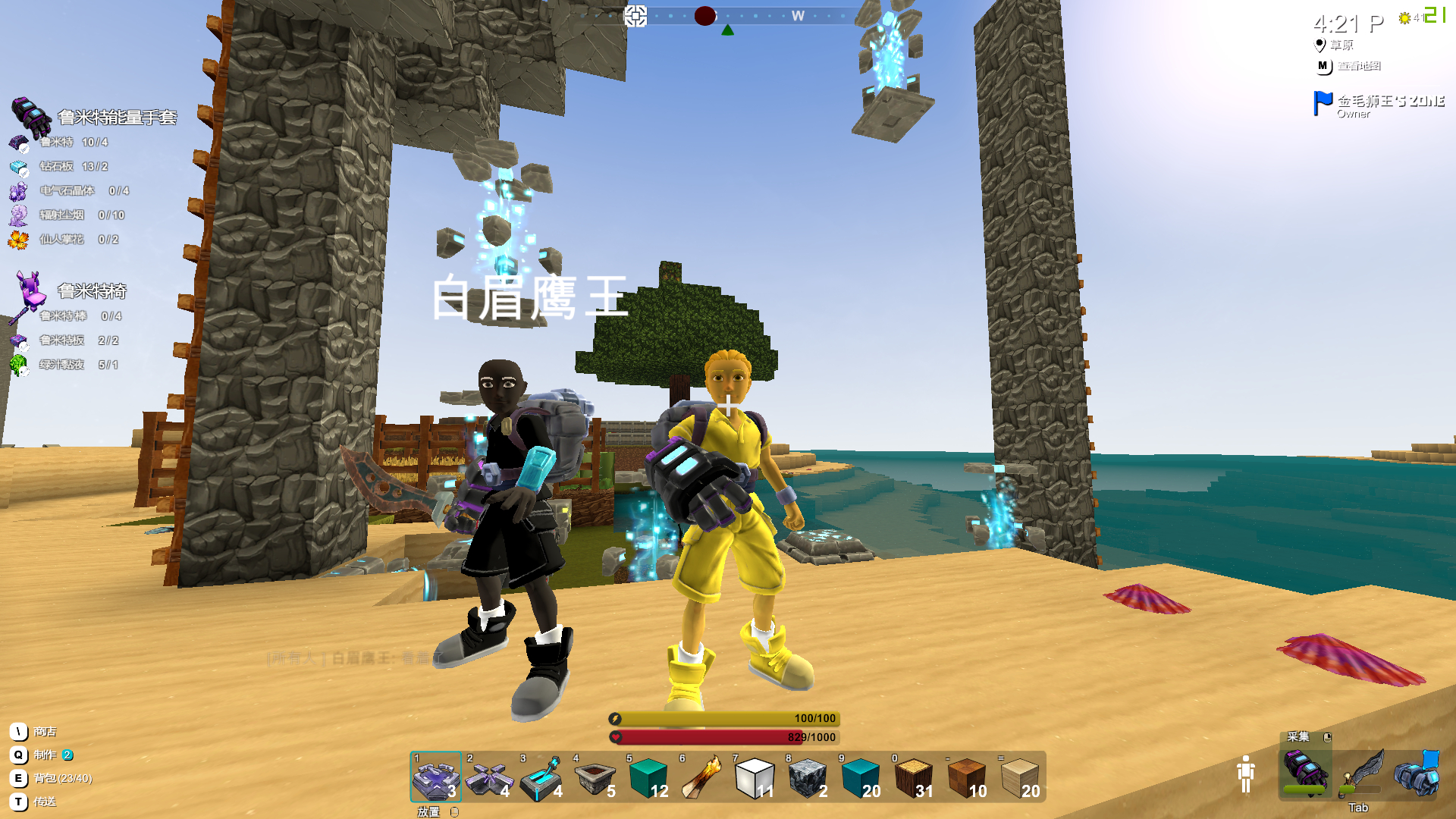 我们四个人名字分别是 白眉鹰王 青翼蝠王 紫衫龙王 还有我 金毛狮王 哈哈 我们四个现在在一个名字叫 CR开荒世界的服务器里 也算是打个小广告吧 目前的成果就是做了一个光明顶,一个奈何桥和阎王殿,我和白眉有过将近两年的mc游戏经验了 所以来玩这个游戏也算是有点小基础吧 下边放点小图