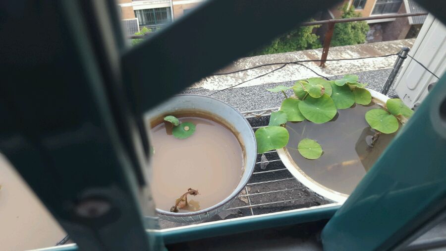 可能缺水了,最后一盆那个叶子脱离水面,晒干的