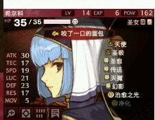 11缇塔:血少防御还低,如果成长率实在到时候跟不上直接装龙盾当备胎,可以的话就祈祷之戒吧