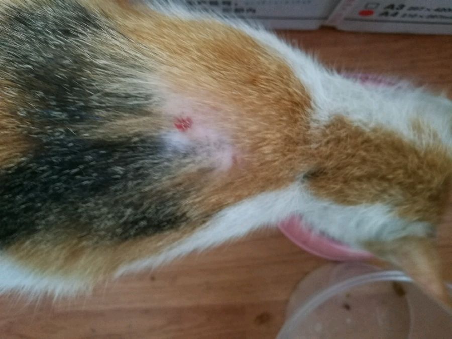 一只流浪猫,每天到办公室,现在我们喂着。上个星期生了一窝小猫。想问下,它这身上是猫藓还是螨虫?