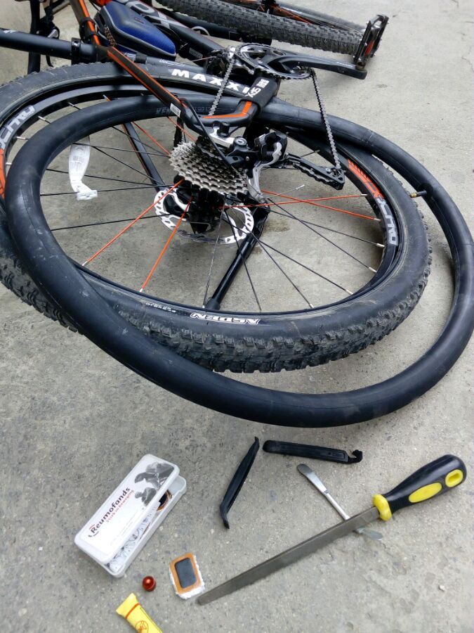 骑着马儿唱着哥,来到郊外。返程离家几公里快时,感到菊花一紧,低头一看后轮已瘪。转动轮胎查找凶手,居然是一根还没有木质化得软刺。看着没气的胎,感觉胎壁太薄。