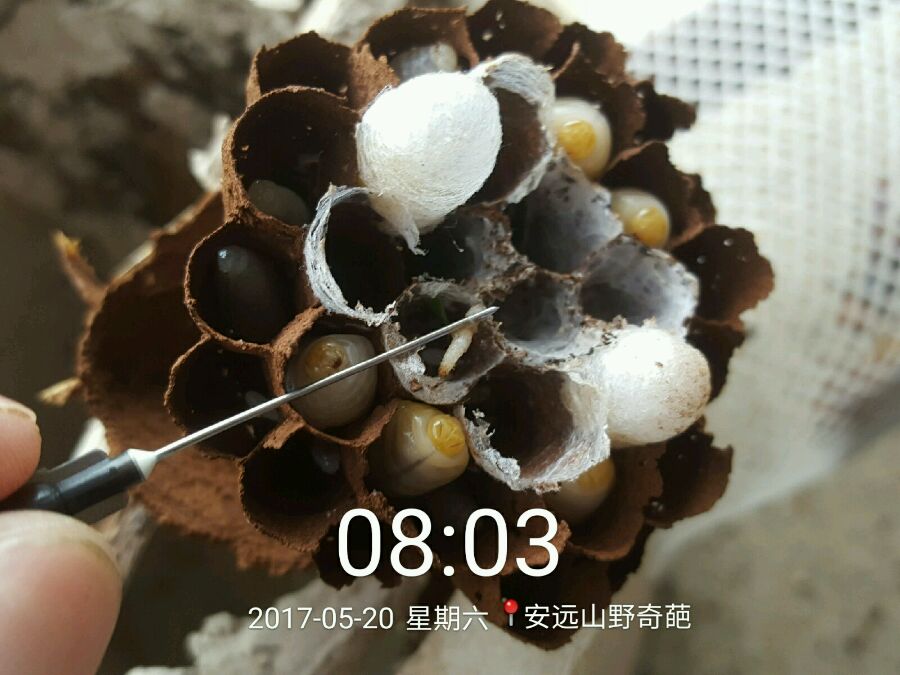 放大看看,小小一个巢,抓了十多条巢虫。