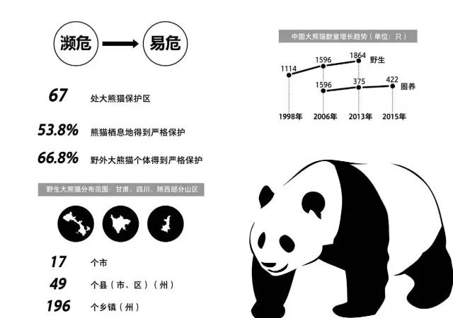 大熊猫 是我国特有的一种珍稀动物,分布在四川、陕西、甘肃三省的部分山区。它黑白两色,体态粗笨,憨态可掬,深受各国人民的喜爱。为了保护大熊猫,我国投入了大量的资金和力量建立了大量以大熊猫及其栖息地为保护对象的保护区,迄今为止大熊猫是世界范围内受关注度最高的野生动物之一。